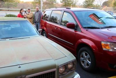 Der Grand Caravan ist übrigens der rote Wagen rechts. Der Haufen Schrott links daneben ist ein wunderschöner Cadillac, der seine besten Jahre leider schon hinter sich hat.