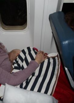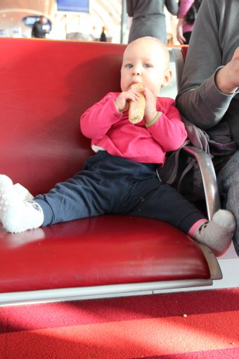 Gut gestärkt konnten wir das Thema Babywanne in Angriff nehmen. Am Infoschalter erklärte uns eine Dame freundlich aber bestimmt, dass der Flug von DeltaAir durchgeführt würde und sie uns nicht helfen könne. Wir sollten uns an Delta wenden. OK, Suche nach jemanden von Delta. Eine Mitarbeiterin des Flughafens sagte, wir müssten den Transferbereich verlassen und uns an einem Schalter melden. Nachdem wir keinen Ausgang finden konnten, haben wir uns entschieden einfach an einen beliebigen Boardingcounter von Delta zu gehen. Dort erwartete uns schon eine Mitarbeiterin: "Ah, Sie sind die mit der Babywanne". Der zweite Satz war dann leider schon nicht mehr so erfolgversprechend: "Wir haben leider nur eine Wanne an Bord und die ist vergeben." Ihre Kollegin ergänzte mit Blick auf Lidia, dass die Babywanne ohnehin zu klein sei. Alle Versuche seit Oktober, eine Schlafmöglichkeit für Lidia in einer Babywanne zu organisieren, waren also ohnehin völlig unnötig. Wenigstens wissen wir jetzt, dass wir für den Rückflug keinerlei Mühe dafür mehr aufwenden müssen.