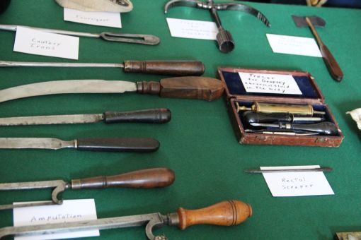 Mandy und Ralf konnten sich für die schaurig schönen Arztinstrumente begeistern.