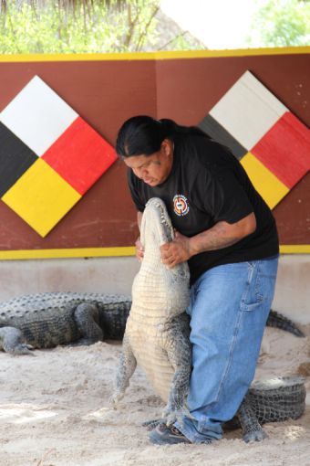 Das gefährlichste Kunststück bestand sicherlich darin, dass der Alligator den 3 1/2-Zentner-Kollos auf seinem Rücken überlebt hat.
