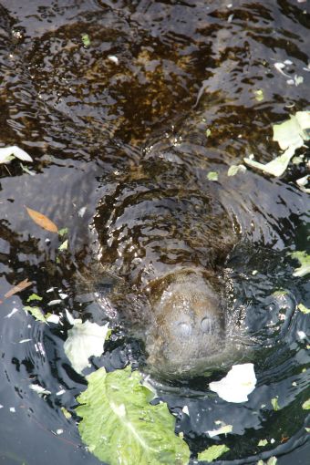 Und dann war es soweit: In einem 5 x 5 Meter großen Becken haben wir dann drei Manatees entdeckt.