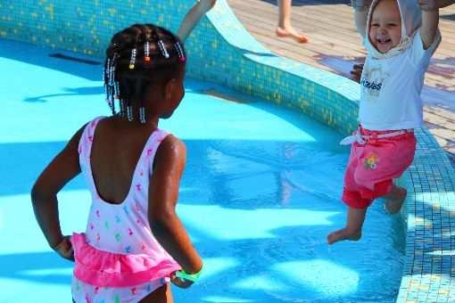 Wenn sie andere Kinder sieht ist sie ganz aufgeregt und versucht allen zu winken.