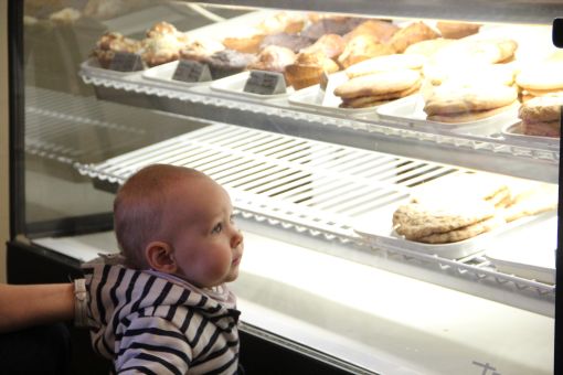 Vom Spielen kam dann auch der Hunger und sie hat ihre erste Cinnamon Roll (Zimtkuchen) gegessen: